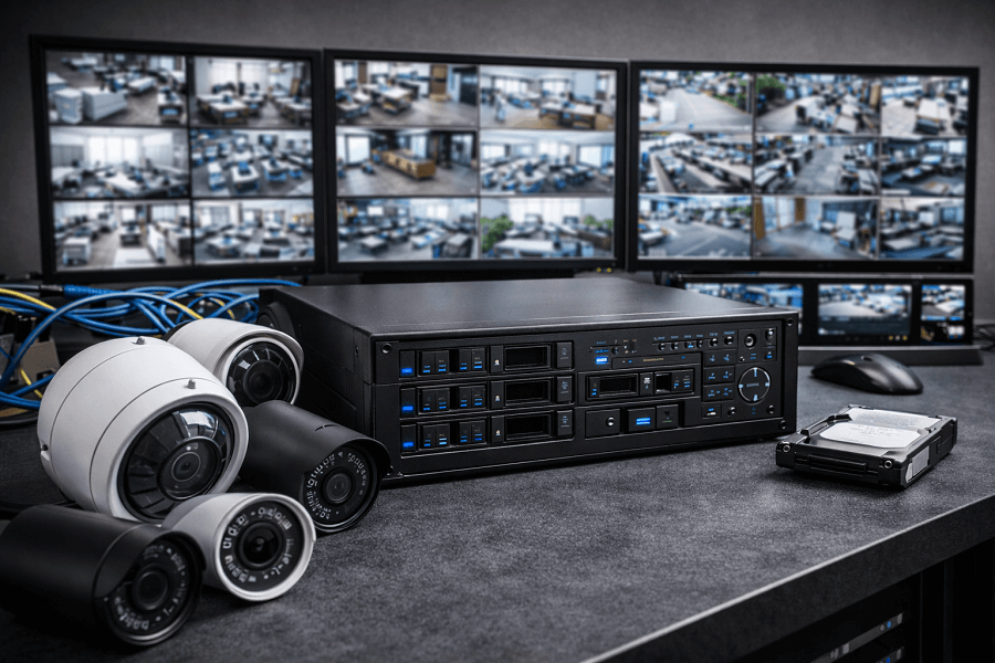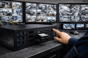 מערכת הקלטה היא למעשה הלב של כל מערכת מצלמות רשת. היא מקבלת את האותות מהמצלמות, מאחסנת אותם על כוננים קשיחים ומאפשרת גישה נוחה לצפייה חוזרת בכל רגע.
